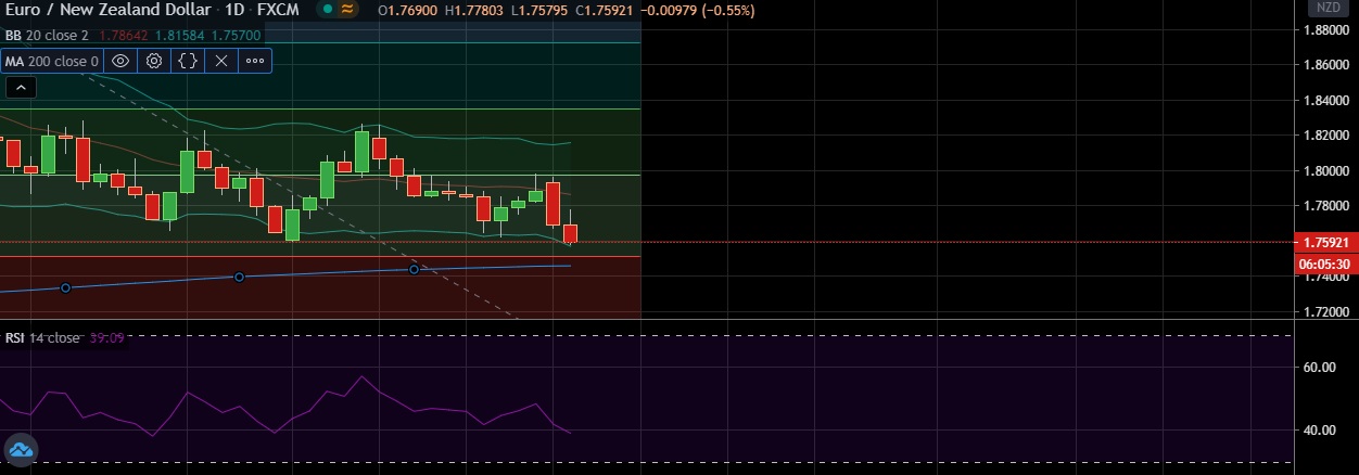 • EUR/NZD has seen a more impulsive move lower , the pair is likely to be drawn towards 1.7457 ( 200 DMA).