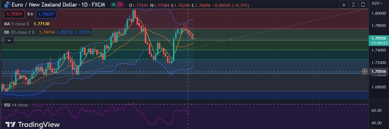 • EUR/NZD is now on course to register a close below the 38.2%fib support level, chart points to bigger drop towards 1.7450 level.
