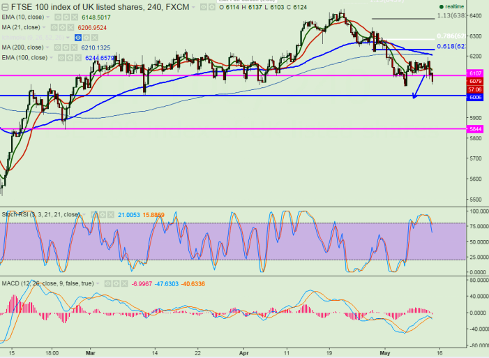- FTSE100 has declined after making a high of 6196 yesterday. It is currently trading around 6086