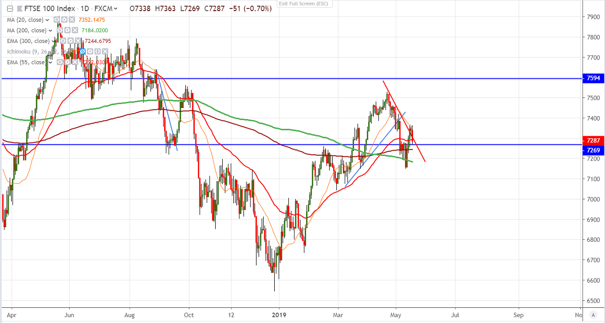 FTSE100 has shown a good recovery of more than 2.5% after 20 day of huge selling of more than 5% on account of slight easing trade tensions.The Brexit uncertainty is putting pressure on GBP.British PM May said that in the final attempt she will be presenting “new bold offer” to get the deal to be done after failing three times in parliament’s approval for her deal.GBP was trading weak against USD and lost more than 300 pips in previous week. It is trading around 1.27432 and is expected to come down till 1.2660. It hits high of 7363 and is currently trading around 73.