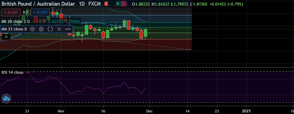 • GBP/AUD strengthened on Monday as traders clung to hopes that Britain and the European Union would soon seal a long-awaited Brexit trade deal.