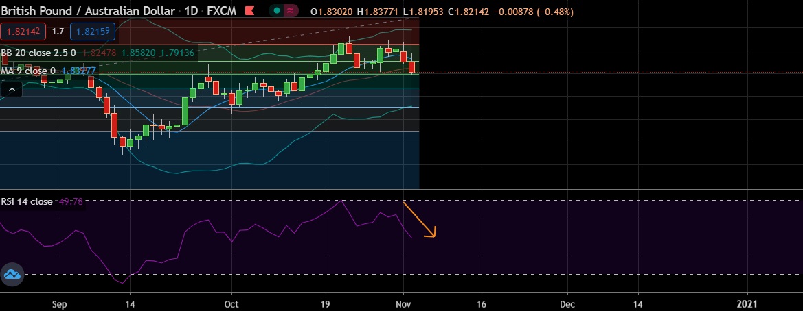 • At GMT 17:52, the pair was trading 0.46% lower at 1.8218, lowest since 28th Oct 2020.