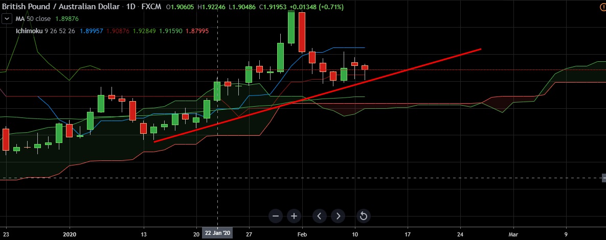 • Major support is at 1.9200 (Trendline), a breach could potentially lead to further rapid decline as the next support is not until 1.9088 (50DMA)