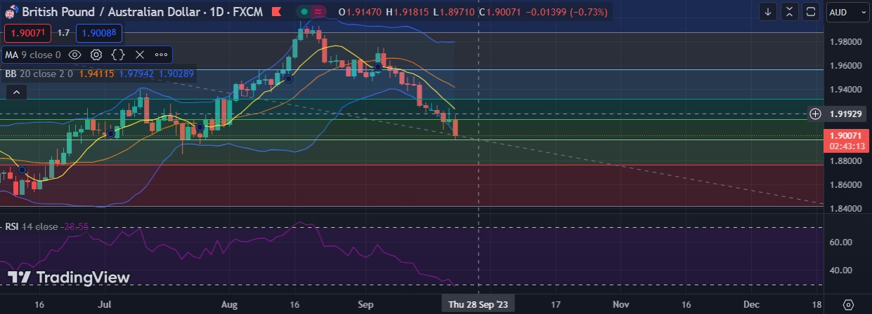 • Strong support is seen at 1.8979 (38.2% fib)and break below could take the pair towards 1.8933 (Lower BB).