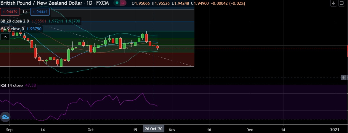 • Immediate support is seen at 1.9396 (Daily low) and break below could take the pair towards 1.9374 (Lower BB).