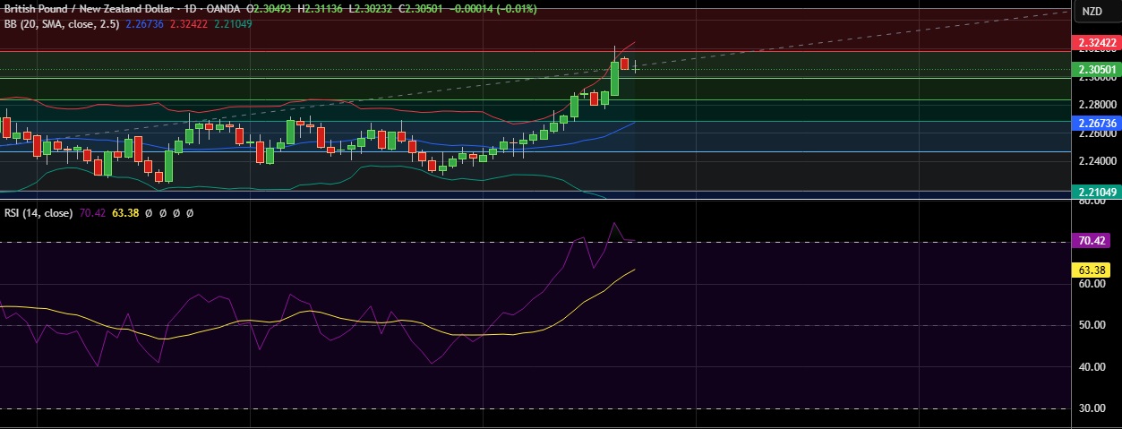 • Immediate resistance is located at 2.3179( 23.6% fib), any close above will push the pair towards 2.3242 (Higher BB).