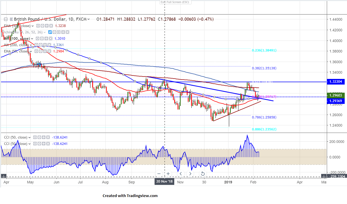 Cable declined till 1.2850 yesterday after BOE monetary policy. The central bank has kept its rates unchanged and has cut its growth forecast to 1.2% from 1.7% due of Brexit uncertainty. But GBPUSD recovered sharply more than 150 pips till 1.29962 and is currently trading around 1.29631.