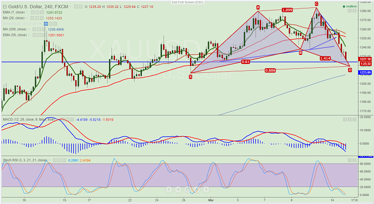 - The commodity has broken major support $1235 and declined till $1225 at the time of writing. It is currently trading around $1227.