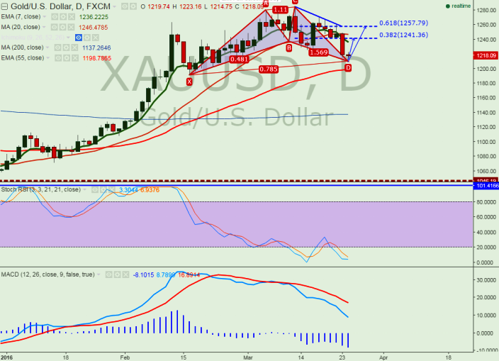 - The yellow metal has broken major support $1225 and declined till $1214.75. It is currently trading around $1217.75.