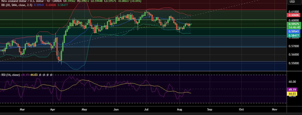 • Support is seen at 0.5915 (50%fib)and break below could take the pair towards 0.5869(Lower BB).