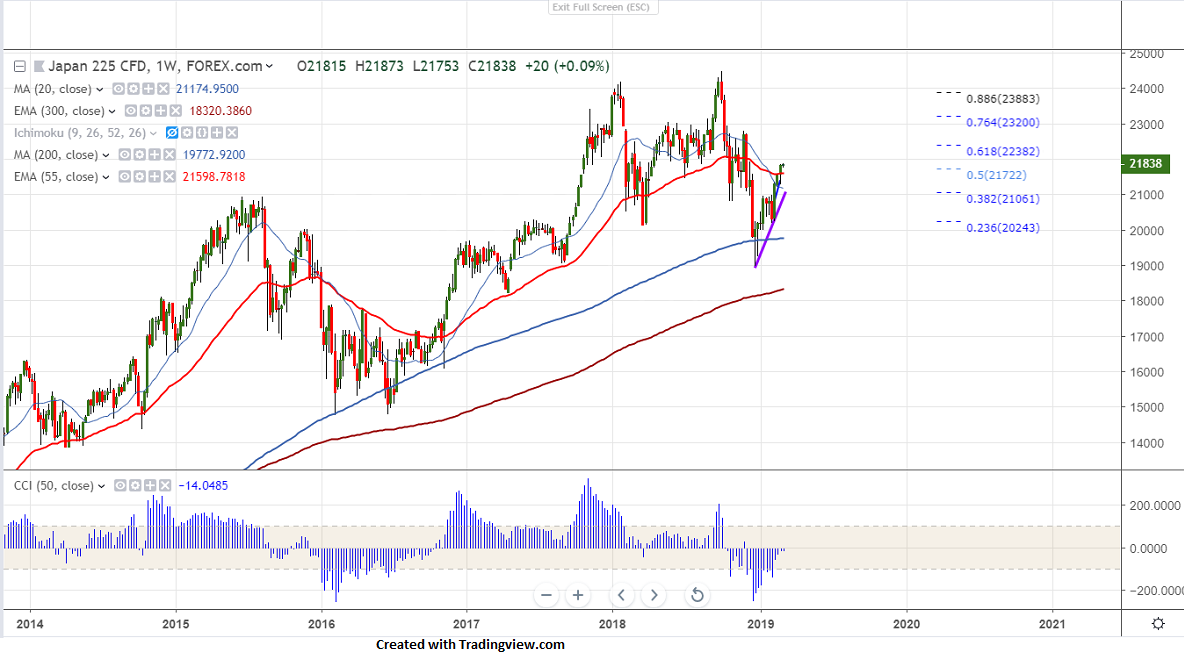 Asian markets are trading higher especially China’s Shanghai jumped more than 2.5% on US-China trade deal hopes and MSCI announced to quadruple weighting of China mainland shares.Nikkei is trading higher for 4th consecutive week and jumped more than 8.5% from low of 20228.US market has closed slightly higher with Dow Jones at 26026 (0.43% higher) and S&P500 2803 (0.69% higher). USDJPY has recovered sharply and has jumped more than 170 pips in previous week.It hits high of 112.07 and is currently trading around 111.96.