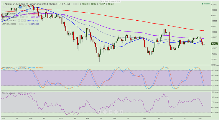 - Nikkei Index has has broken minor support 16410 and declined till 16252 on Friday due to weaker than expected US Non-farm payroll. It is currently around 16432.