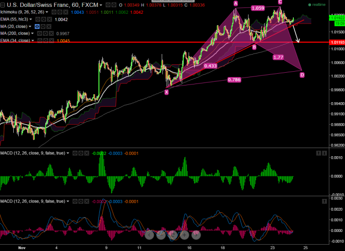 - USD/CHF has made a high of 1.02260 and slightly retreated from that level.