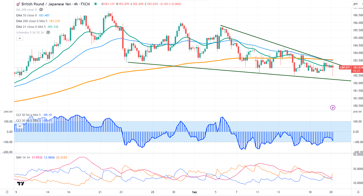GBPJPY lost its shine on board based US dollar buying. It hit a low of 182.44 at the time of writing and is currently trading around 182.84.