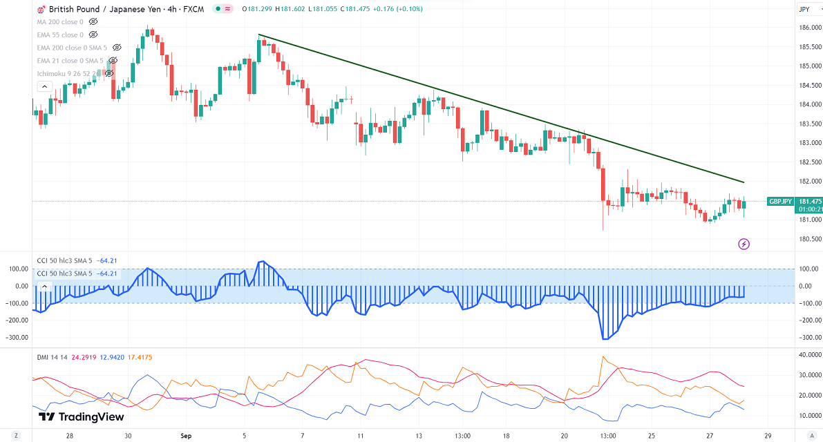 GBPJPY has traded in a narrow range between 180.71 and 181.68 for the past week. It hit a low of 180.85 yesterday and is currently trading at around 181.509.