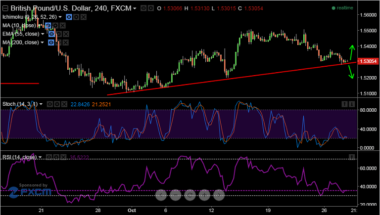 - But Cable has strong trendline support at 1.5290, breaks below could take the pair to 1.52 levels