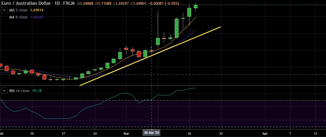 • EUR/AUD rose higher on Tuesday, as coronavirus related news weighed on commodity linked Australian dollar.