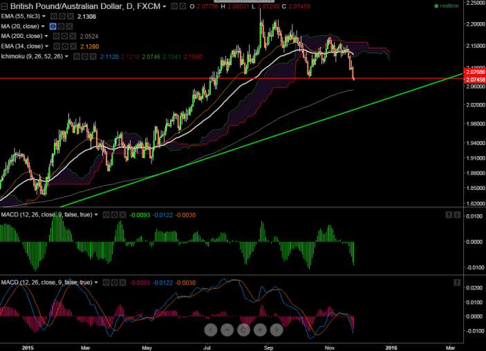 - GBP/AUD has broken major support 2.0780 and confirms major trend reversal , a decline till 2.0500 (200 day MA)/2 is possible .