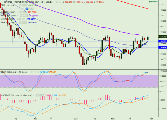 - The pair is facing major resistance around 162.80 and any break above will take the pair till 164.10/166.