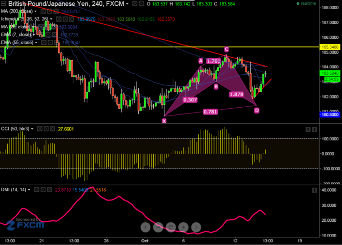 - GBP/JPY has made a low of 181.84 and recovered from that level. till 183. It is currently trading at 182.88.