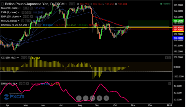GBP/JPY breaks and trades well above 200 day MA and also above major resistance 185. overall trend is bullish a jump till 187.45/188.26 level.