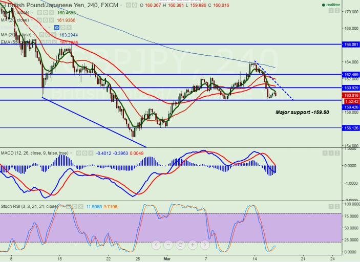 - Any break below 159.50 confirms major trend reversal, a decline till 158/156.47 is possible.