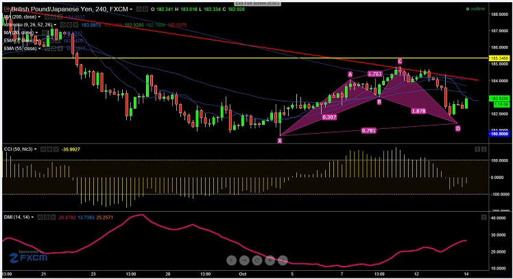 - GBP/JPY has made a low of 181.84 and recovered from that level. till 183. It is currently trading at 182.88.