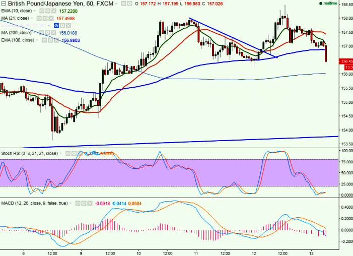 - On the higher side any break above 157.20 (10 day EMA) will take the pair to next level till 158/158.50/159.