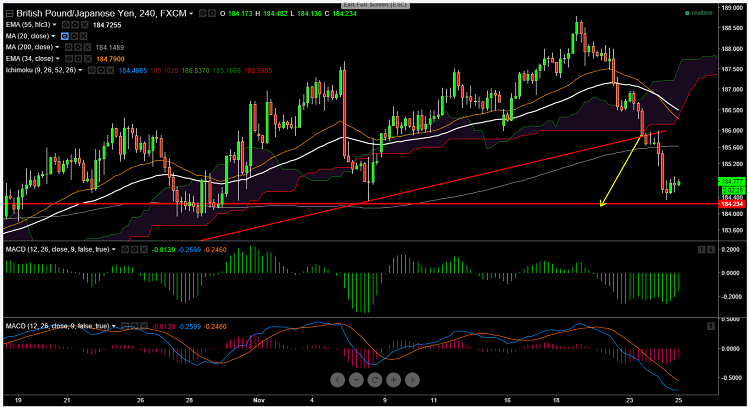 - On the lower side major support is around 184.30 and break below will drag the pair further down till 183.80/183.