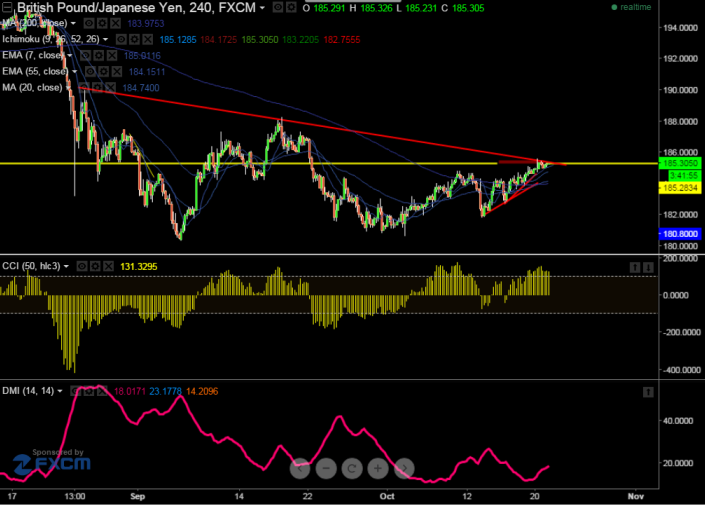 GBP/JPY breaks major resistance 185.30 and jumped till 185.59. It is currently trading at 185.30 above that level.