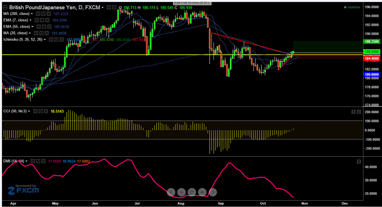 GBP/JPY breaks and trades well above 200 day MA and also above major resistance 185. overall trend is bullish a jump till 187.45/188.26 level.