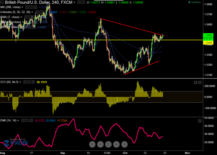 GBP/USD has broken trend line resistance around 1.5500 (trend line joining 1.5658 and 1.5585) and any break above confirms major trend reversal, a jump till 1.5580/1.5600/1.5650 is possible.