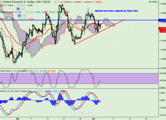 - The pair has broken major support and 1.4250 and declined till 1.42250 level. Short term trend is still weak as long as resistance 1.4320 holds.