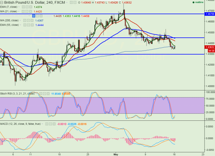 - Major resistance – 1.4450 (55 day 4 H EMA)