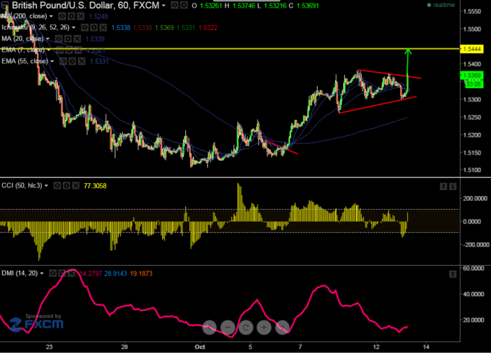 - GBP/USD is facing strong trend line resistance around 1.5370 (trend line joining 1.5380 and 1.53659) and break above confirms short term trend reversal , a jump till 1.5450/1.5480 is possible .