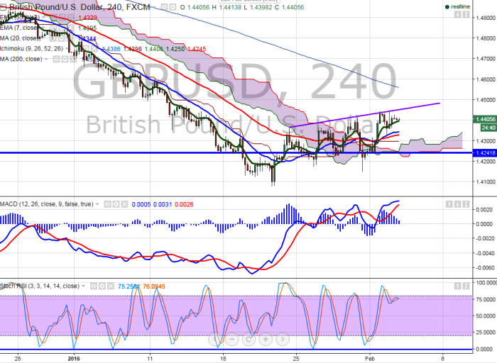 - Major resistance -1.4450 (trend line joining 1.43626 and 1.44074)