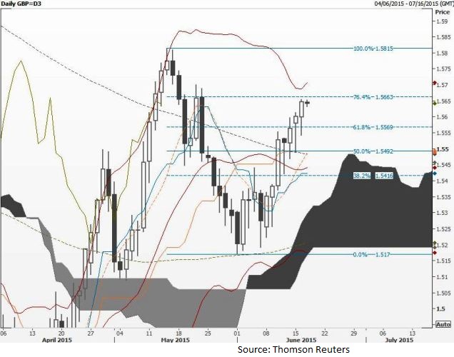 Initial resistance is seen at 1.5655 levels, pair consolidates just under Tuesday's 1.5655 peak Pair just shy of the 76.4% retrace of the 1.5815/1.5170 slide Day studies are overbought but require a break back below the 200 DMA