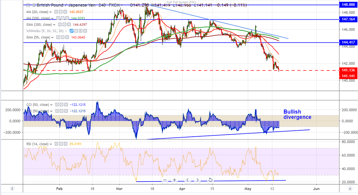 The near term resistance is around 141.65 and any violation above targets 142.20/143.06. It should break above 143.06 (55- 4H EMA ) for further bullishness.