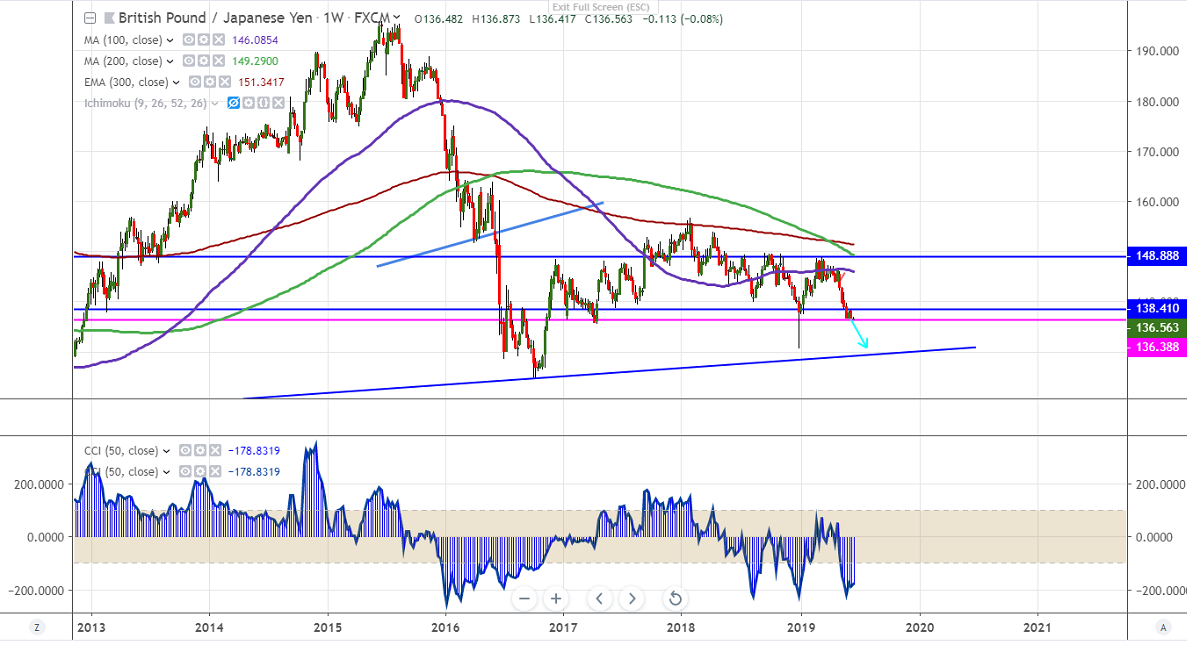 GBPJPY has formed almost a triple bottom near 136.50 and is consolidating around that level. The pair has formed major top around 148.87 and declined more than 1200 pips. The decline was mainly due to broad based weakness of Pound sterling against all majors especially with USD on Brexit uncertainty.