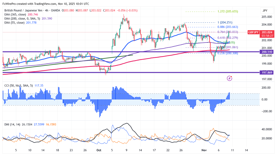 Major Support- 202.50. Any breach below will drag the pair down 202/201.70/201/200.60/200/199.30/199/198.34/197.40.