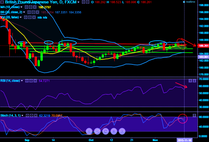 On daily chart, the pair has made a breakout below key support at around 186.694 levels, a formation of doji at this level signifies serious weakness in this pair.