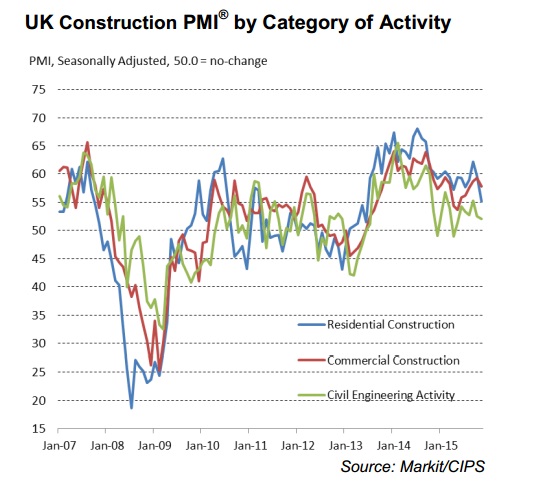 According to Markit economics, all broad area of construction activity experience slowdown in November. UK residential activity dropped sharply.