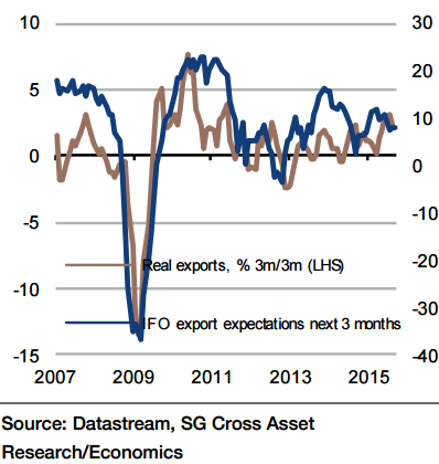 In August, the German trade surplus is expected to have amounted to €18.1bn, the lowest since January this year. On a trend basis, however, higher surpluses should return as the weak energy prices reduce the value of imports sizeably.