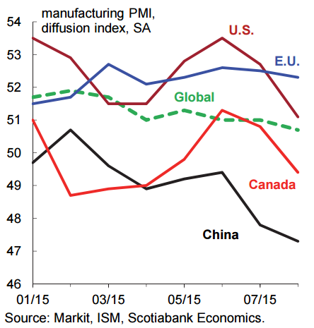 The Chinese economy is in slowdown mode, global markets and the economies linked to China's growth face further challenges. Downward bias in commodity prices, and the renewed increase in financial market turbulence are risking further weakness. Financial market volatility around the world has increased dramatically in recent weeks. Sell-off in global stock markets, followed by only a partial rebound, continues to grind lower and highlights a downgraded assessment of economic conditions and corporate earnings.