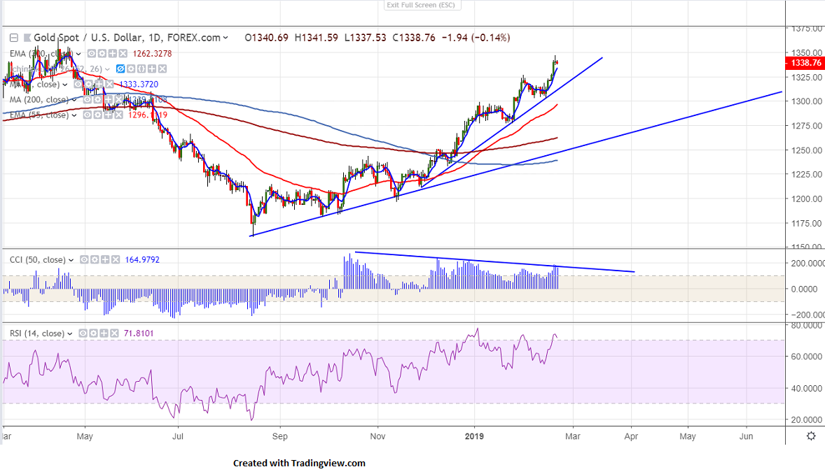The yellow metal is facing near term resistance around $1350 and break above will take the gold to next level till $1360/$1365.The yellow metal should break above $1365 for further bullishness.