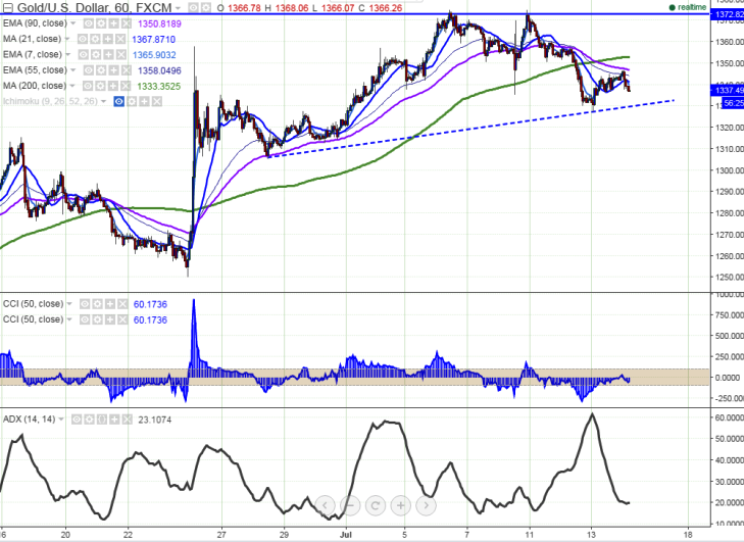 - The intraday bias is weak and is trading slightly below Tenkan-Sen ($1342.70) and Kijun-Sen ($1337). So a slight dip till $1327/$1318 is possible.