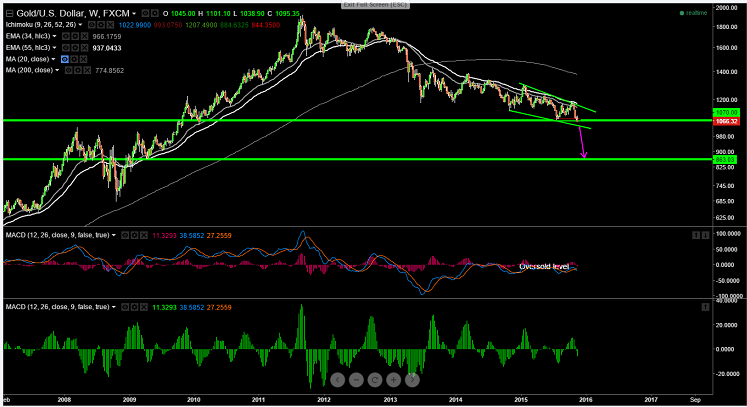 Gold breaks major demand zone level $1070 , this is short term trend reversal level and a decline till $1040 is possible .