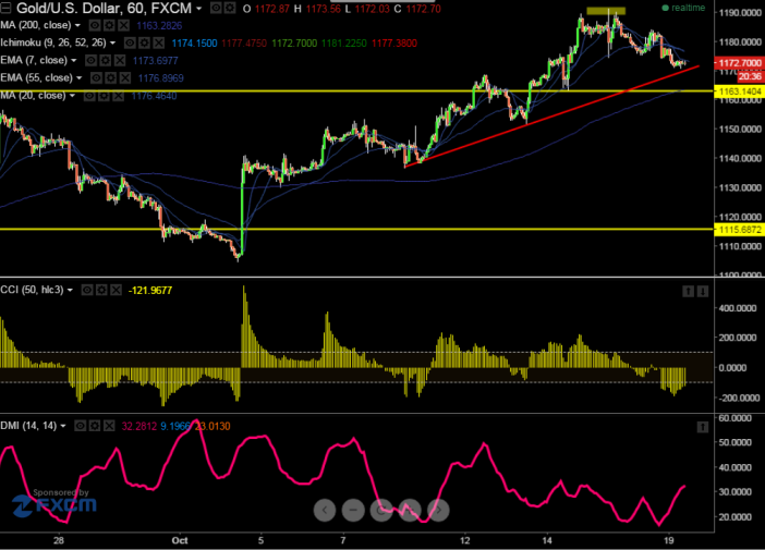 Gold has made a high of $1190 and started to decline from that level. It is currently trading at $1173.