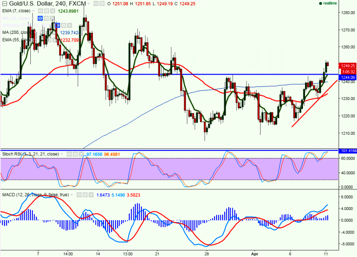 - The yellow metal ahs broken major resistance around $1250 and jumped till $1252.41 at the time of writing. It is currently trading around $1249.