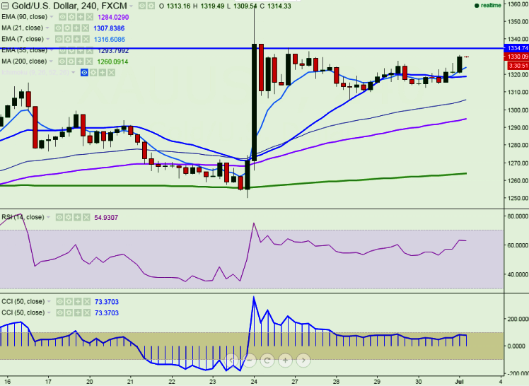- Gold has recovered sharply till $1330 at the time of writing after the Mark Carney hinted that the BOE could ease monetary policy later this summer.